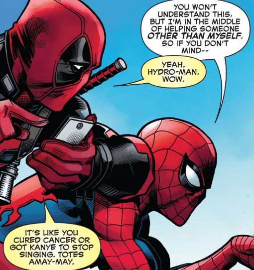 Given that Marvel Studios has appeared to be hesitant on Deadpool's fit in the MCU why not have him off in different dimensions perhaps with Sony and he pays a visit to Peter Parker?